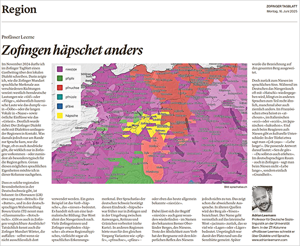Adrian Leemann gibt im "Tages-Anzeiger" Auskunft über Dialektwandel