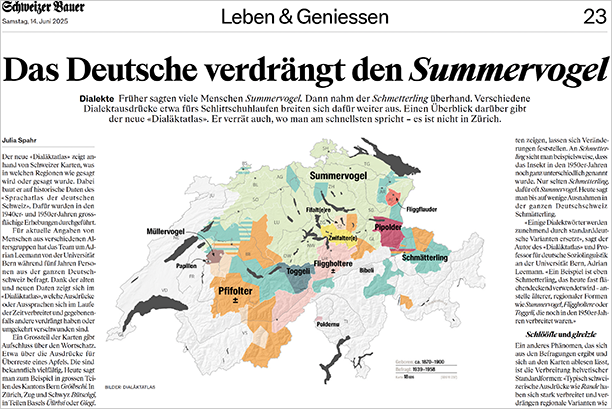 Artikel über den "Dialäktatlas" im "Schweizer Bauer."