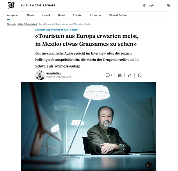 Interview mit dem Friedrich-Dürrenmatt-Gastprofessor Juan Villoro in der Zeitung „Der Bund“.